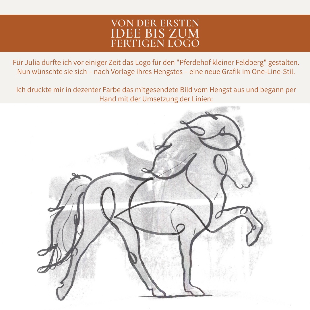 Heute habe ich wieder einmal ein neues Logo für euch. Besser gesagt: Eine Logoerweiterung. Für den Pferdehof Kleiner Feldberg durfte ich bereits vor einiger Zeit ein wundervolles Logo im One-Line-Stil kreieren. Nun wünschten sich die Hofbesitzer noch eine zusätzliche Variante im selben Stil von ihrem Hengst.